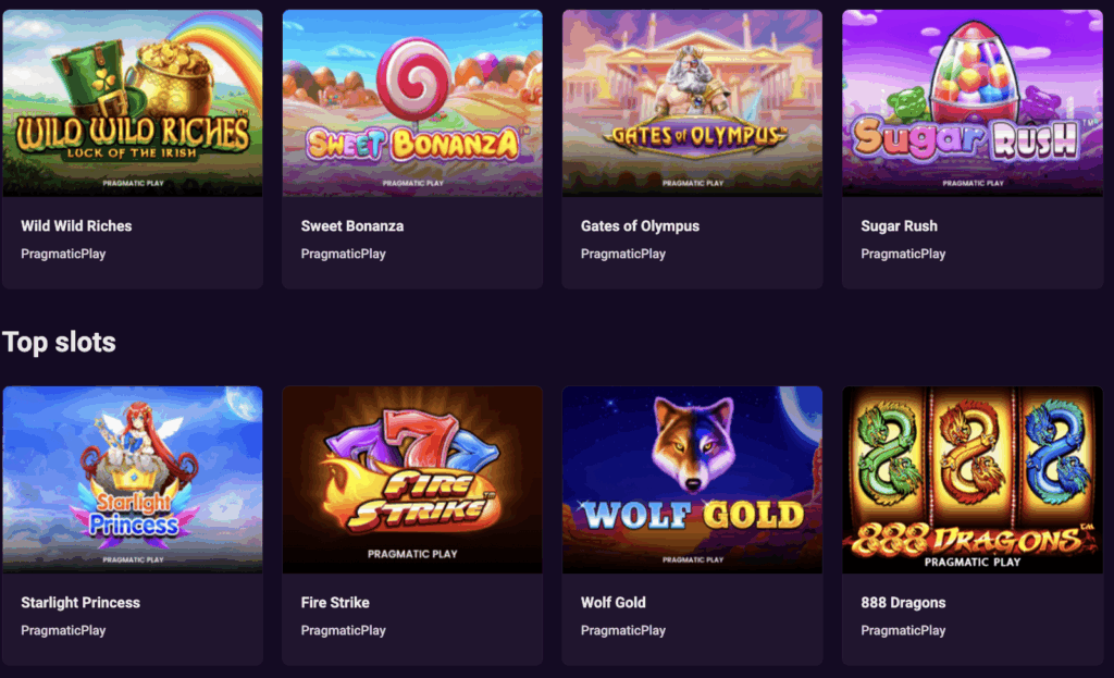 | Top Titles | Sweet Bonanza, Gates of Olympus, Aviator |